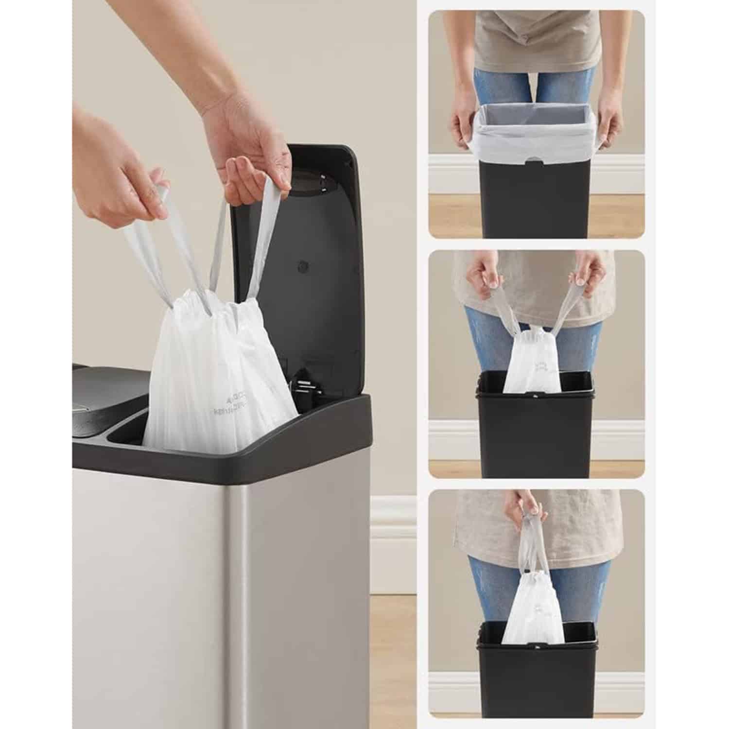 Mūsų 8 litrų talpos šiukšlių maišai su užtrauktuku yra puikus pasirinkimas tiek namams, tiek biurui. Šie maišai pagaminti iš aukštos kokybės HDPE (didelio tankio polietileno), kuris užtikrina jų patvarumą ir ilgaamžiškumą.