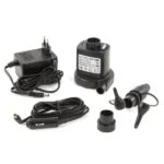 Kompresorius / elektrinis siurblys. Čiužinių, valčių, paplūdimio reikmenų, žaislų ir kt. užpildymui ir ištuštinti Privalumai: – galia 12 V ir 230 V. – 240 litrų per minutę talpa – su antgaliais ir adapteriais.