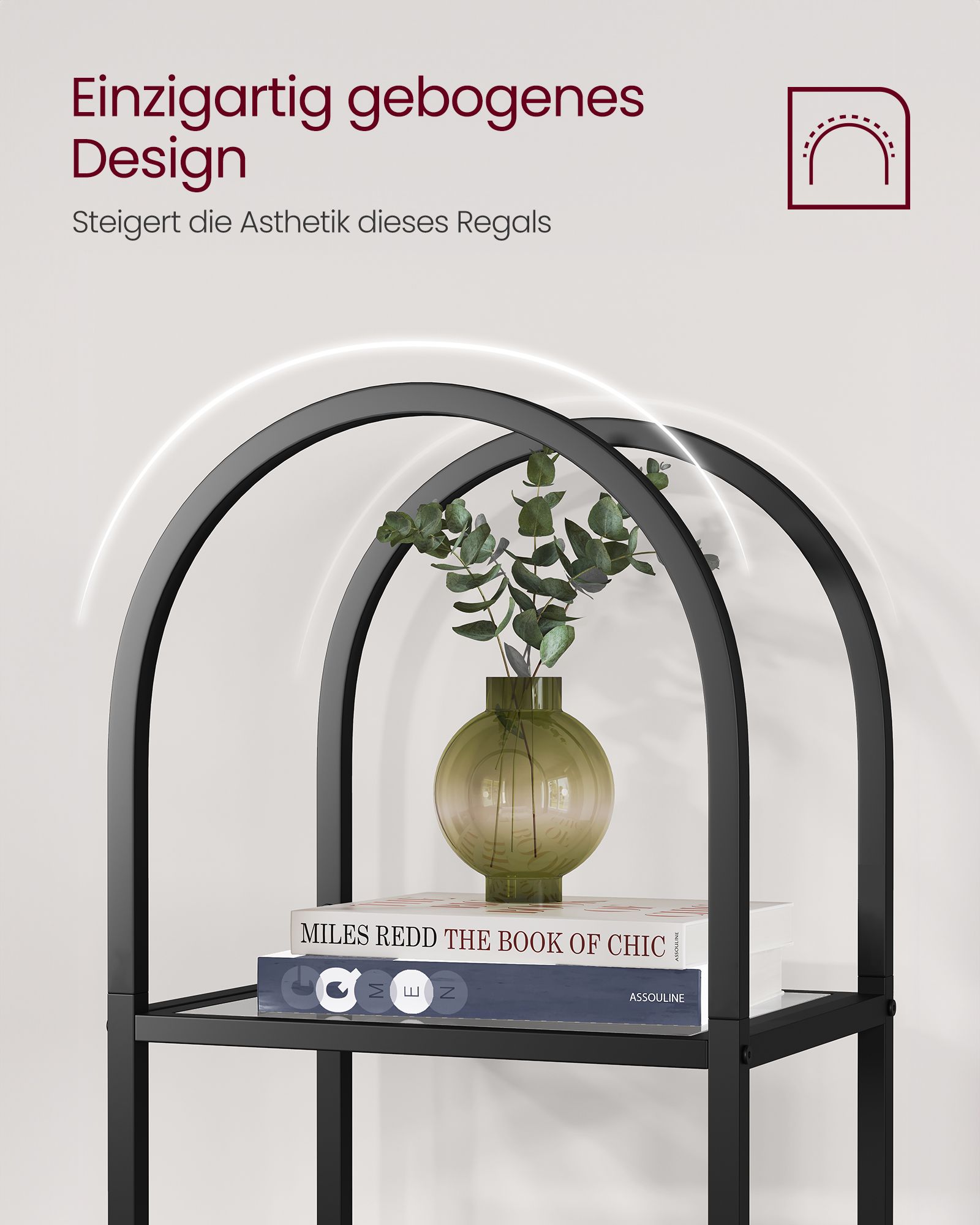 Ši lentyna yra pagaminta iš aukštos kokybės grūdinto stiklo ir tvirto plieno, užtikrinančių ilgaamžiškumą ir stabilumą. Jos minimalistinis dizainas ir subtili juoda spalva suteikia modernumo ir elegancijos bet kuriai erdvei.