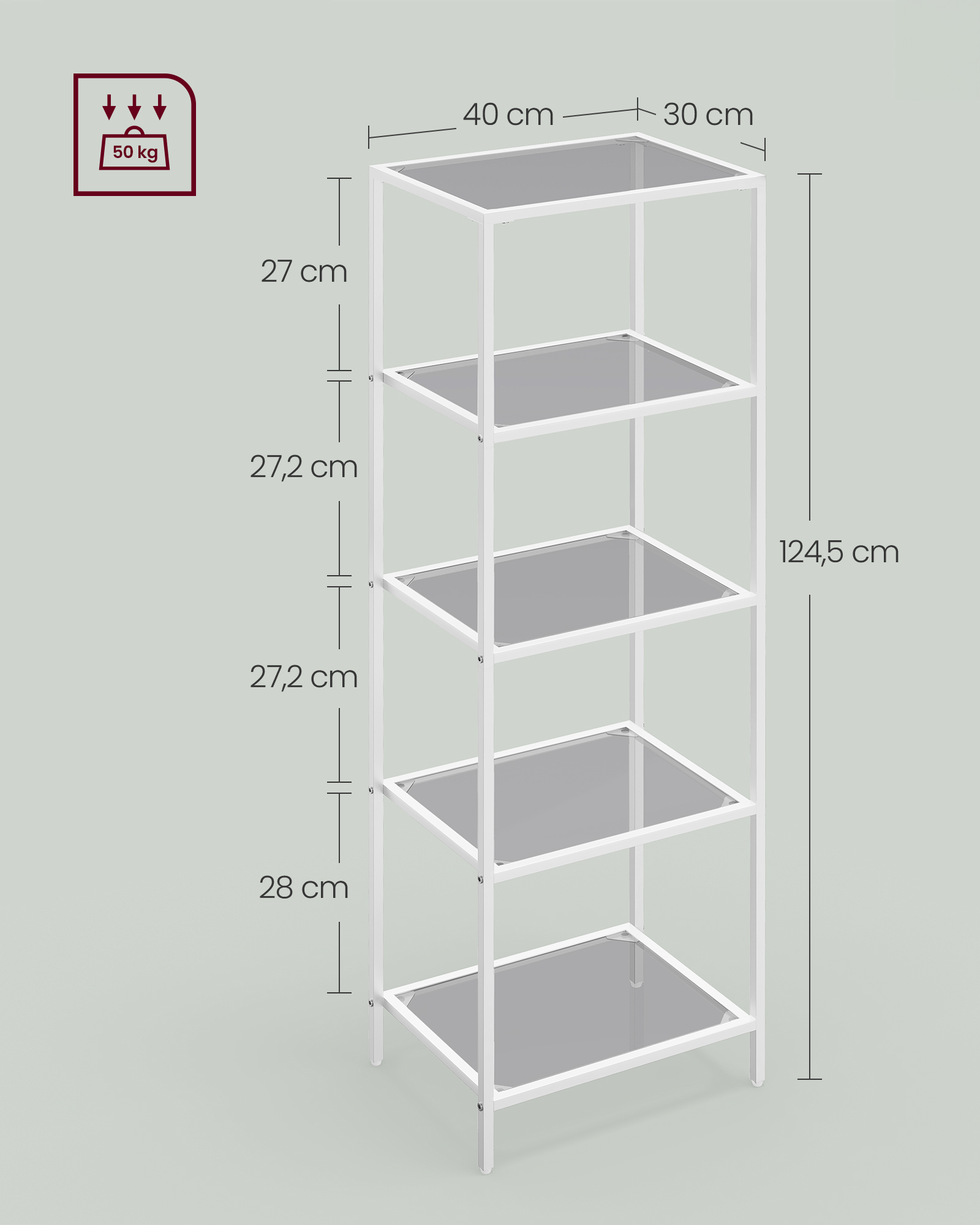 - Dydis: 30 x 40 x 124,5 cm (D x P x A) – kompaktiškas dizainas, tinkantis įvairioms erdvėms.