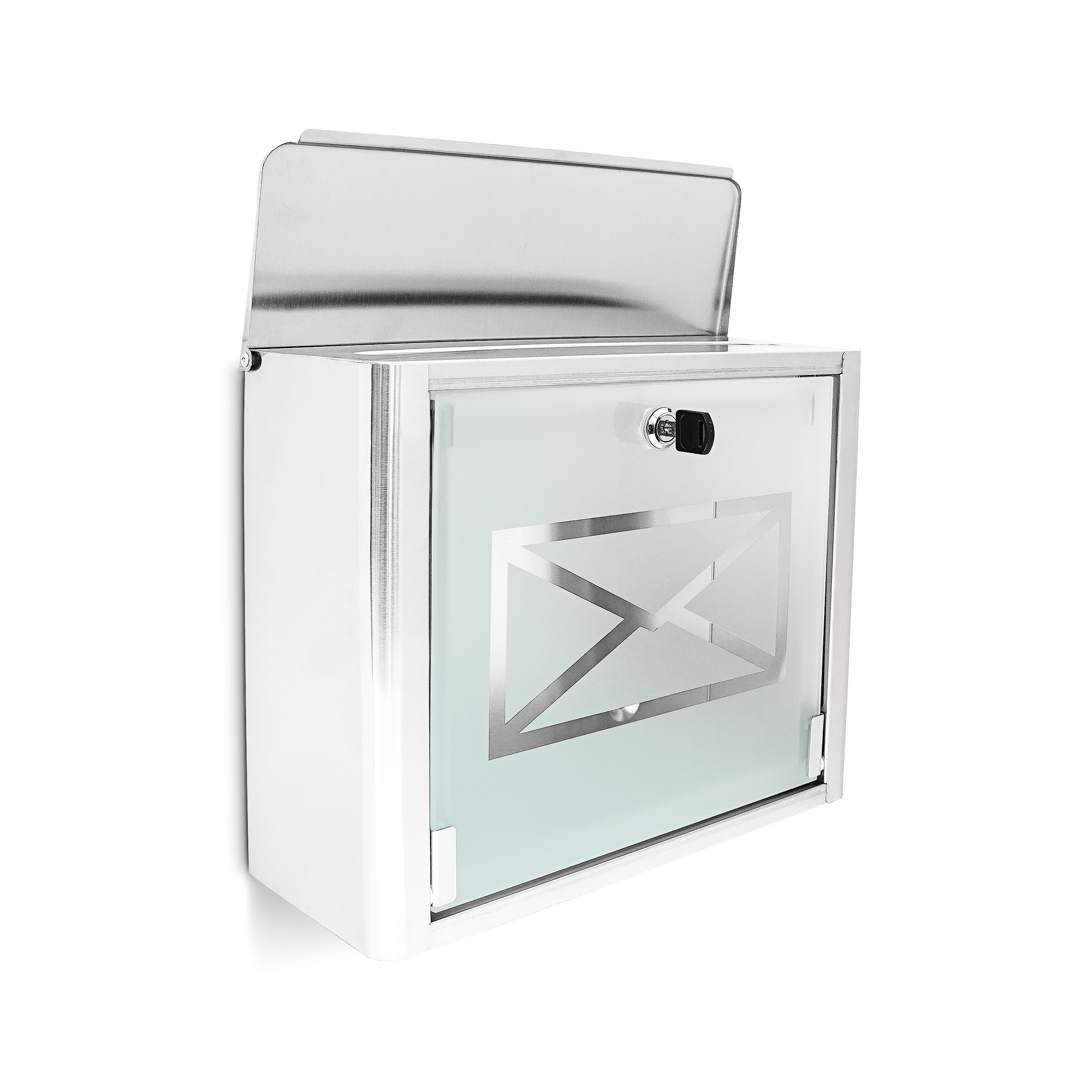 - Stilingas dizainas: Blizgančio nerūdijančio plieno ir dekoratyvinio matinio stiklo priekio derinys suteikia šiai pašto dėžutei išskirtinį ir modernų išvaizdą.