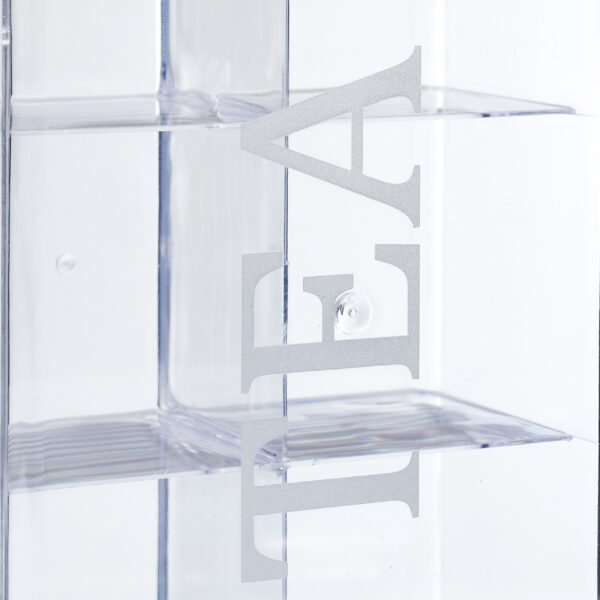 - Permatomas Dizainas: Skaidrus dizainas leidžia lengvai matyti turinį ir greitai rasti norimą arbatos rūšį.