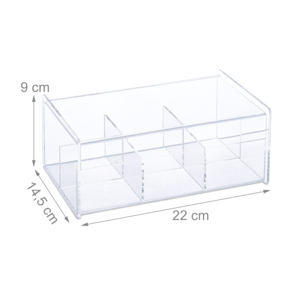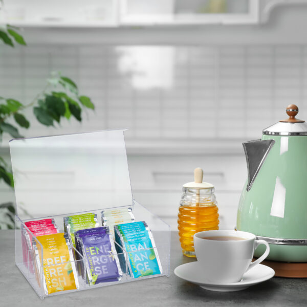 - Skaidrus dizainas: Pagamintas iš aukštos kokybės akrilo, kuris užtikrina, kad visada matysite savo arbatos atsargas.