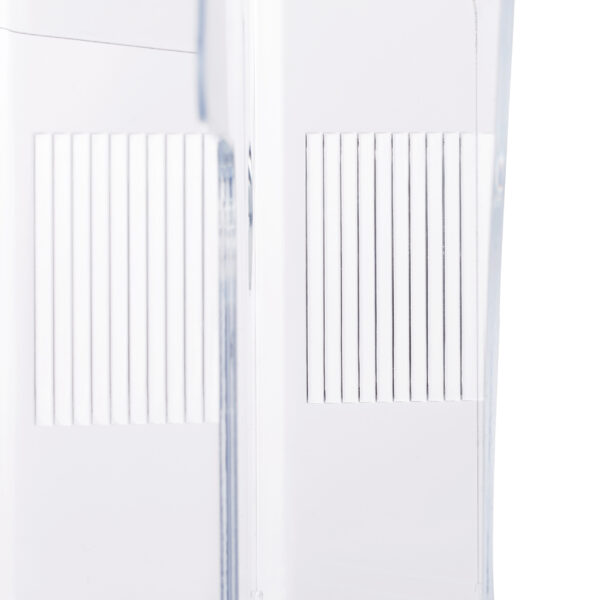 - Diskretiškas dizainas: Skaidrus ir santūrus dizainas su šiek tiek pasvirusia galine sienele, kad jūsų informacija ir reklaminė medžiaga būtų išryškinta.