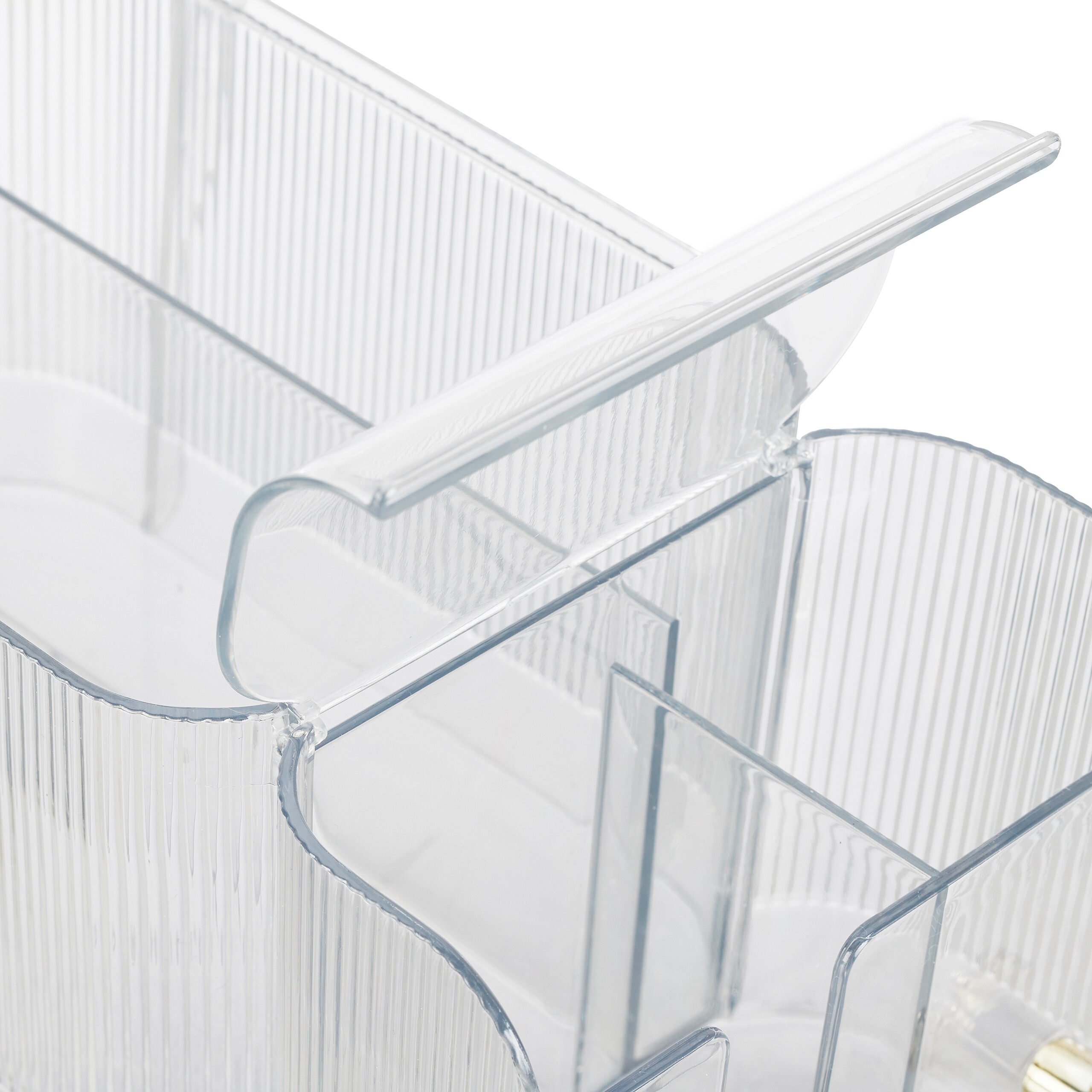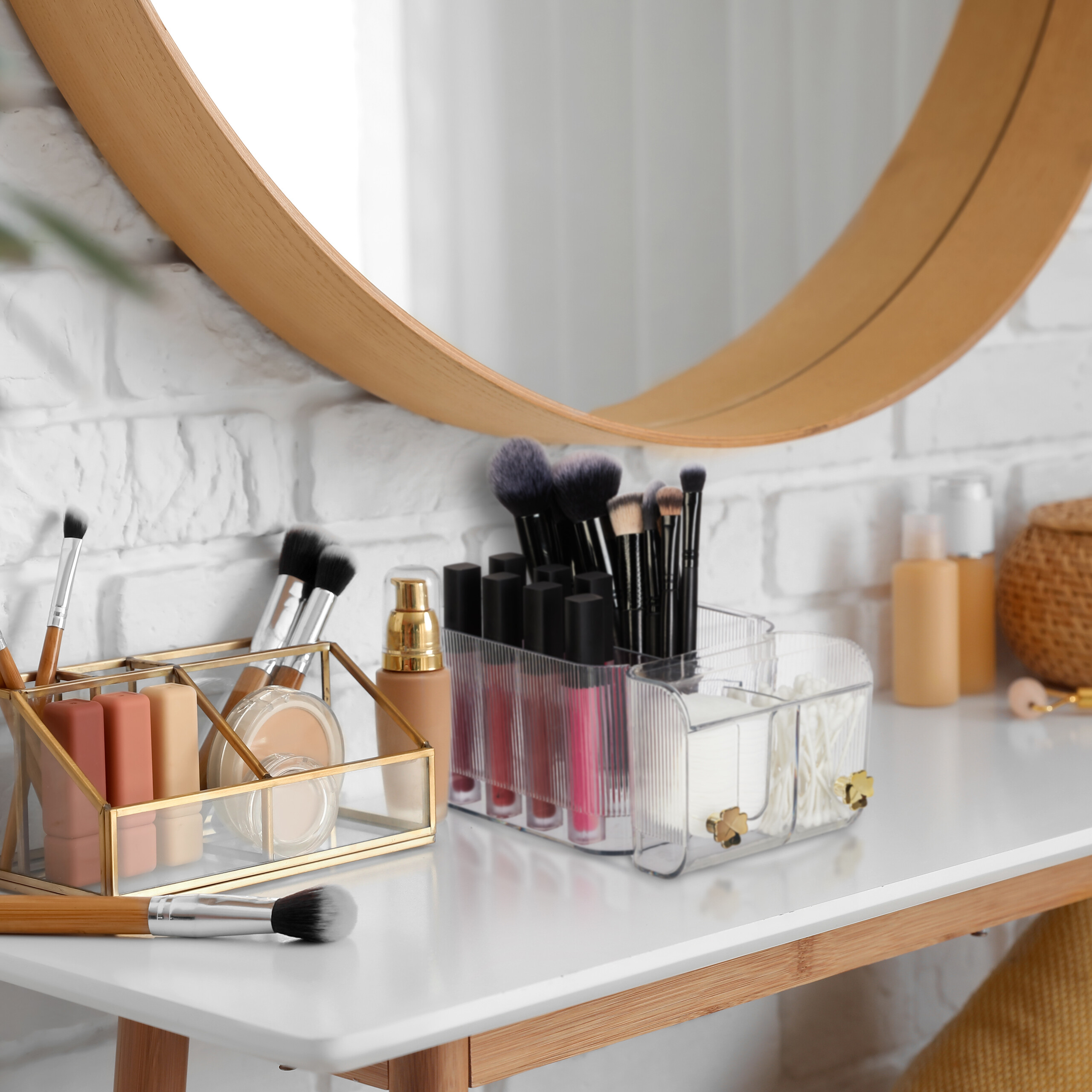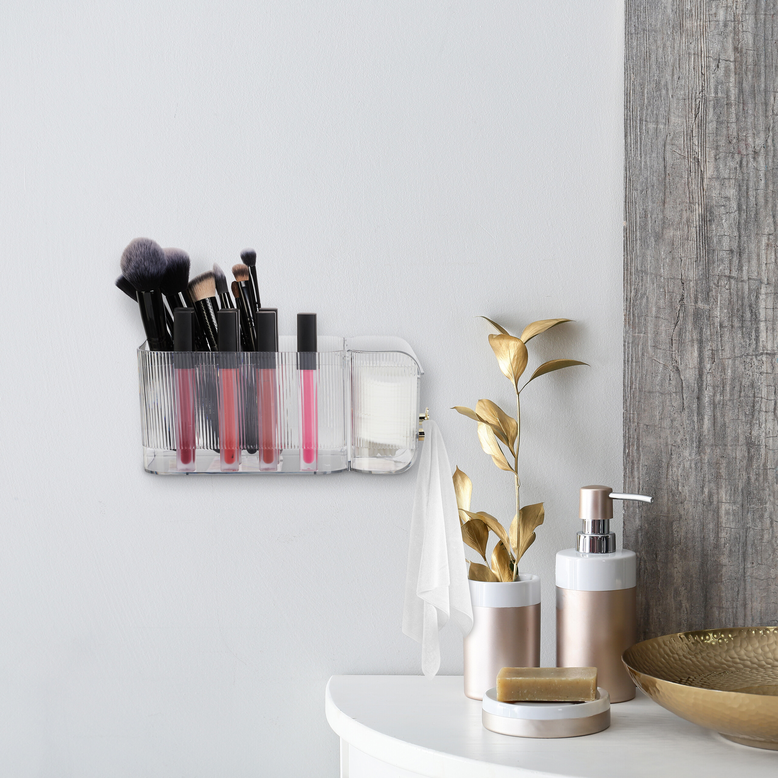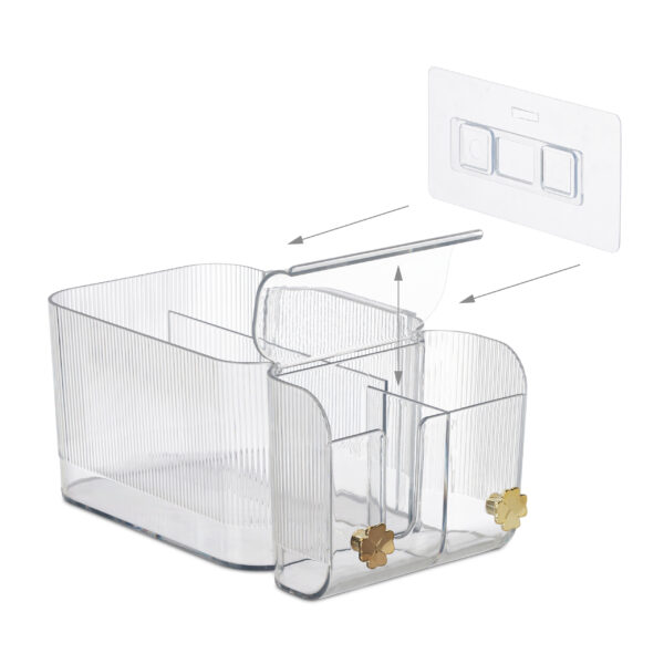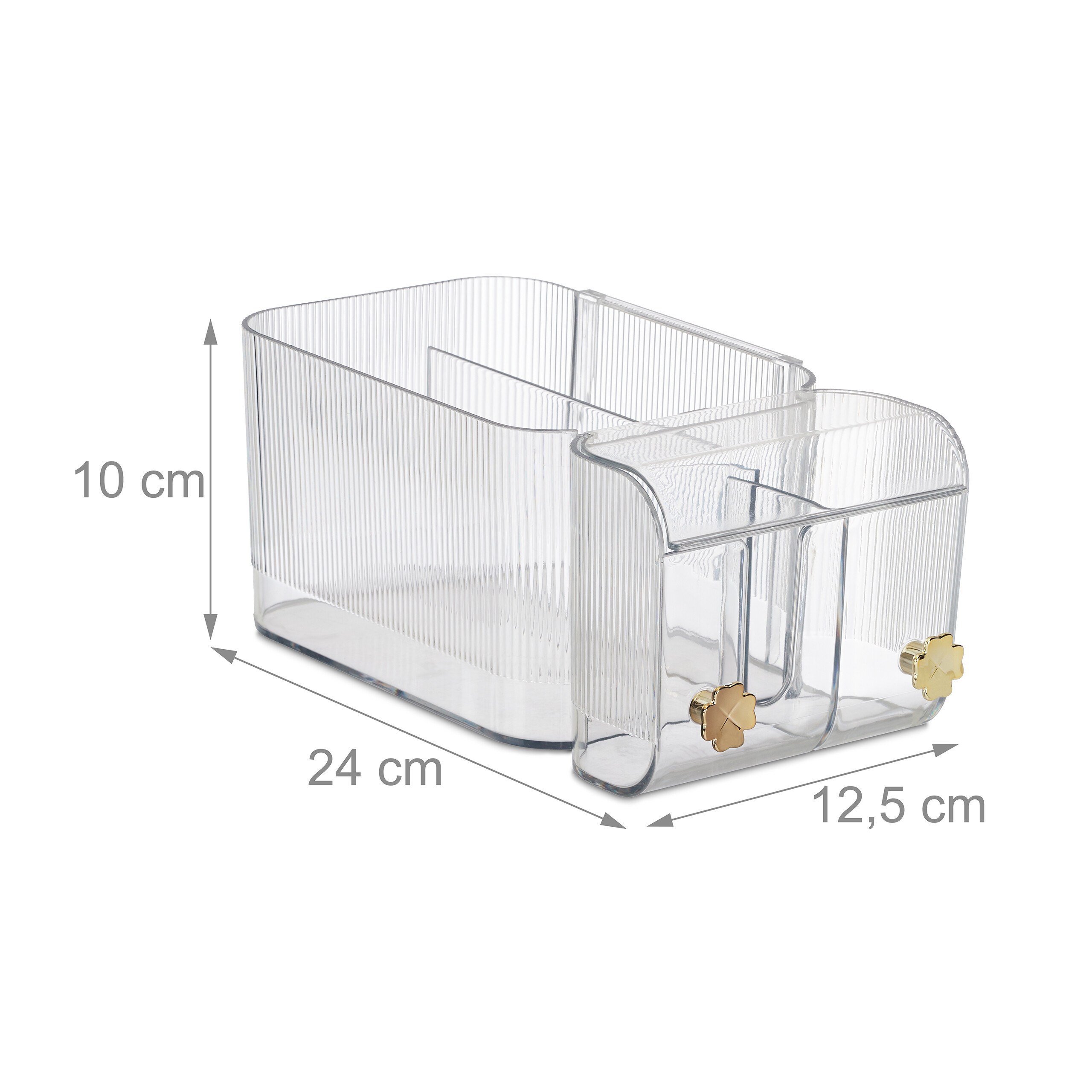 Įneškite tvarkos ir elegancijos į savo vonios kambarį su šiuo universaliu skaidriu makiažo organizatoriumi. Sukurtas taip, kad atitiktų jūsų kasdienius poreikius, šis organizatorius ne tik padės išlaikyti jūsų kosmetiką ir vonios reikmenis tvarkingus, bet ir suteiks stilingą akcentą jūsų erdvei.