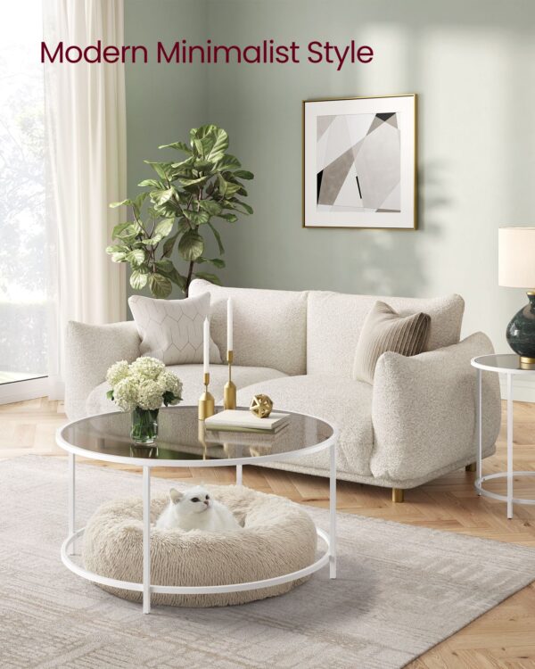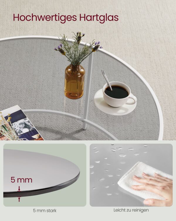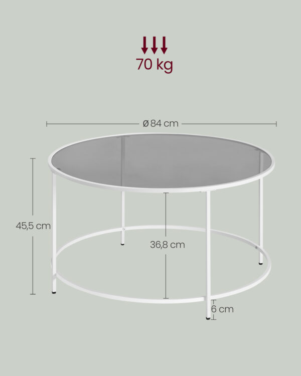Skaidrus kavos staliukas 84×45,5cm., baltos spalvos