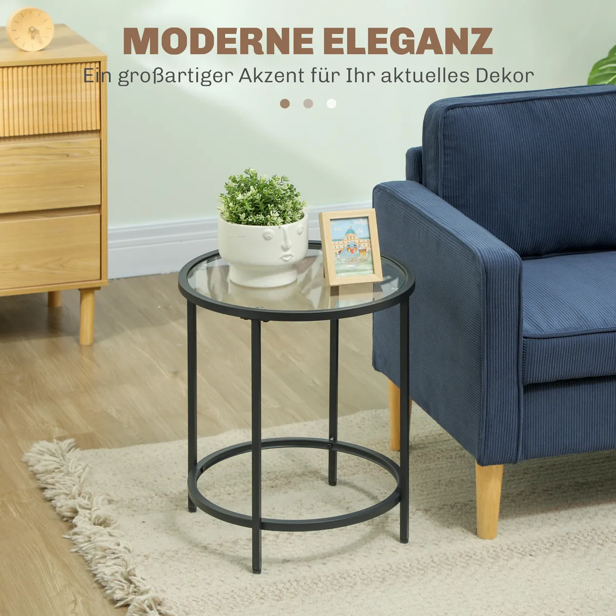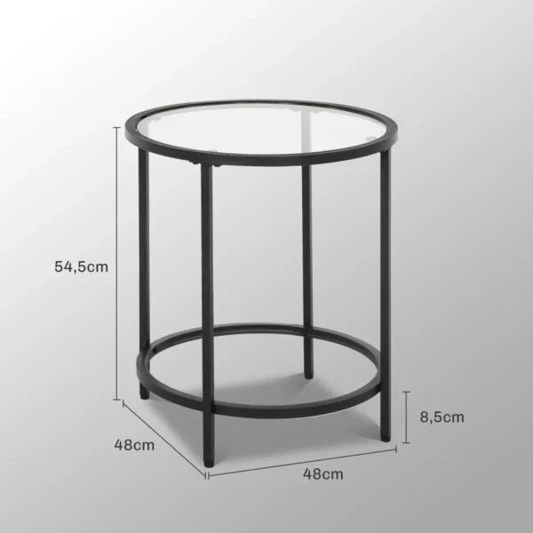 Skaidrus kavos staliukas Homcom 48x48x54,5cm., juodos spalvos