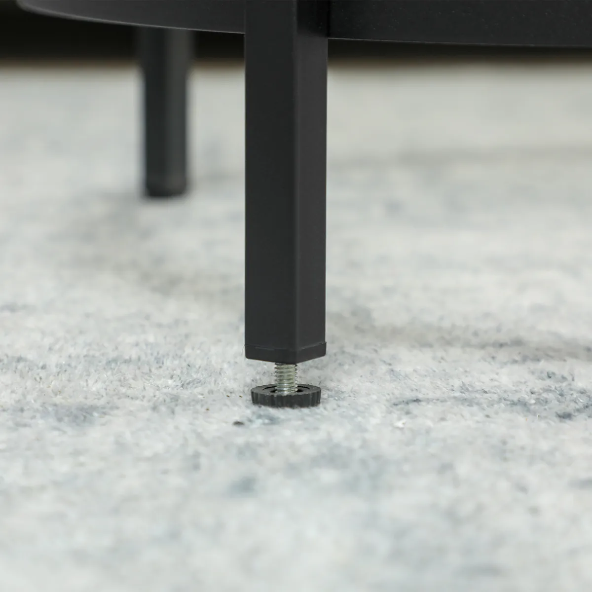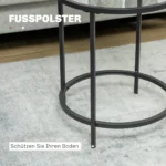 Pridėkite modernios elegancijos savo svetainei su HOMCOM kavos staliuku. Dėl skaidraus grūdinto stiklo viršaus ir tvirto, milteliniu būdu dengto metalinio rėmo jis idealiai tinka naudoti kaip nedidelį kavos staliuką arba naktinį staliuką. Pėdų pagalvėlės taip pat apsaugo jūsų grindis nuo įbrėžimų. Mėgaukitės šiuo praktišku, stilingu baldu.