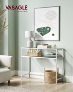 Šis stalas yra ne tik stilingas, bet ir praktiškas. Jo tvirtas plieninis rėmas ir skaidrus stiklo paviršius užtikrina ilgaamžiškumą ir stabilumą, o subtili spalvų paletė leidžia lengvai derinti su įvairiais interjero stiliais. Pasirinkite šį konsolinį stalą, jei norite sukurti šviesią ir erdvią aplinką savo namuose.