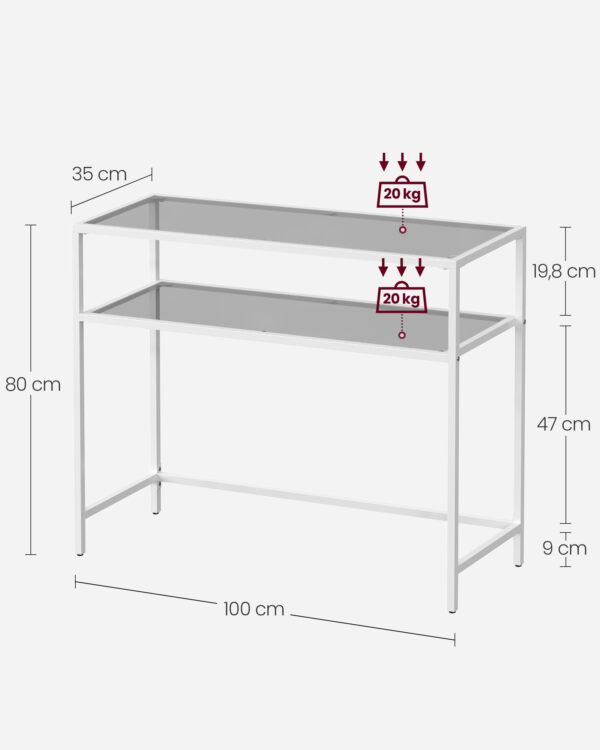 Skaidrus Konsolinis Stalas 35x100x80cm, Baltos Spalvos