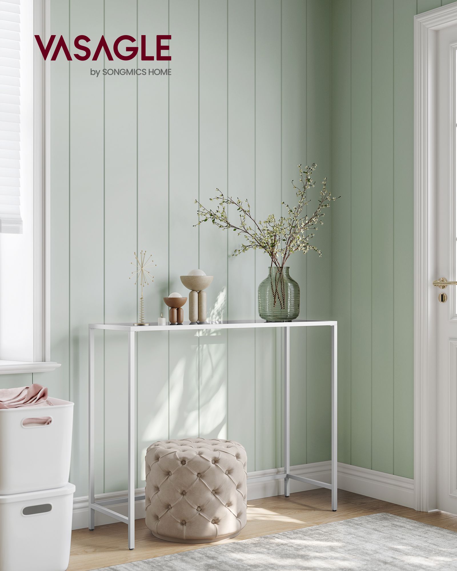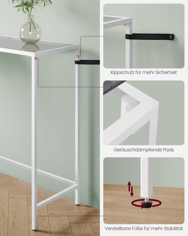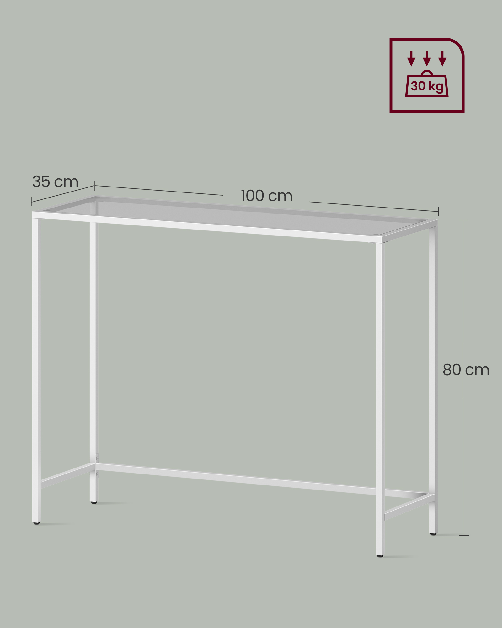 Skaidrus konsolinis stalas 35x100x80cm., baltos spalvos