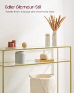 Įneškite elegancijos ir modernumo į savo namus su šiuo išskirtiniu skaidriu konsoliniu staliuku. Jo subtilus dizainas ir aukso spalvos akcentai suteiks jūsų interjerui prabangos ir stiliaus. Puikiai tinka tiek klasikiniam, tiek šiuolaikiniam interjerui.