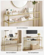 Skaidrus konsolinis staliukas 35x120x80cm., auksinės spalvos