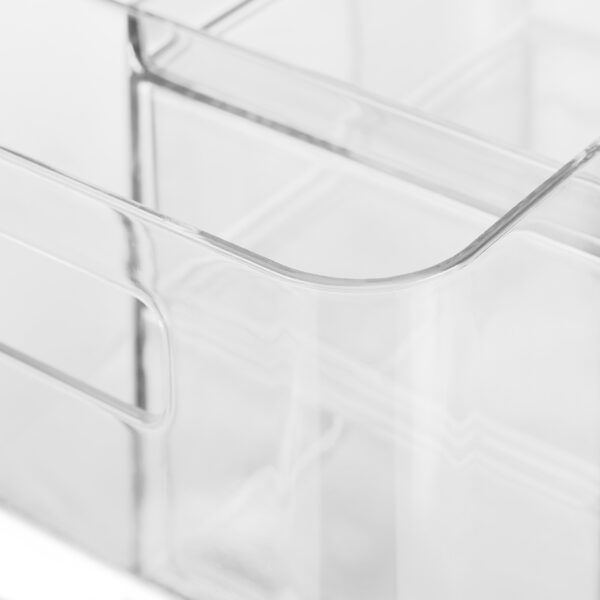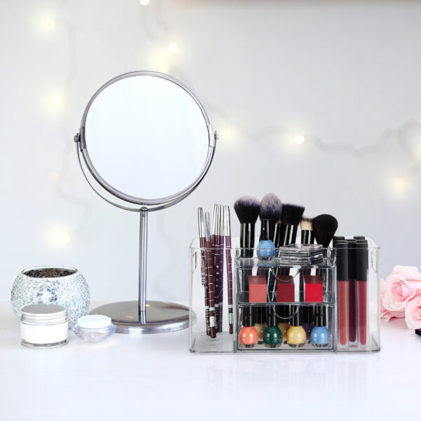 Šis skaidrus makiažo organizatorius yra ne tik praktiškas, bet ir estetiškai patrauklus, todėl puikiai tiks bet kokiame interjere. Pasirūpinkite, kad jūsų grožio priemonės būtų visada po ranka ir tvarkingai sudėtos.