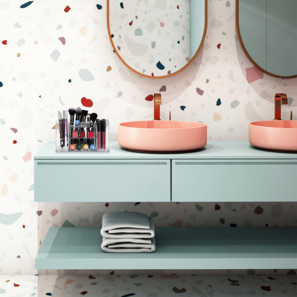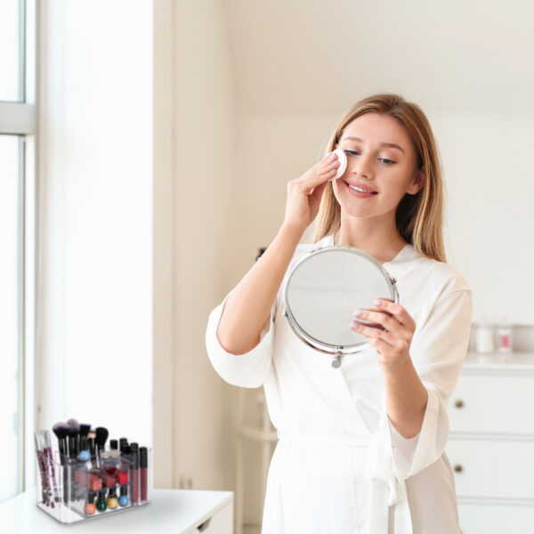 Įneškite tvarkos ir elegancijos į savo vonios kambarį su šiuo universaliu kosmetikos organizatoriumi. Šis stilingas ir funkcionalus grožio laikiklis suteikia daug vietos jūsų kosmetikai ir vonios reikmenims, padėdamas juos laikyti aiškiai ir tvarkingai.