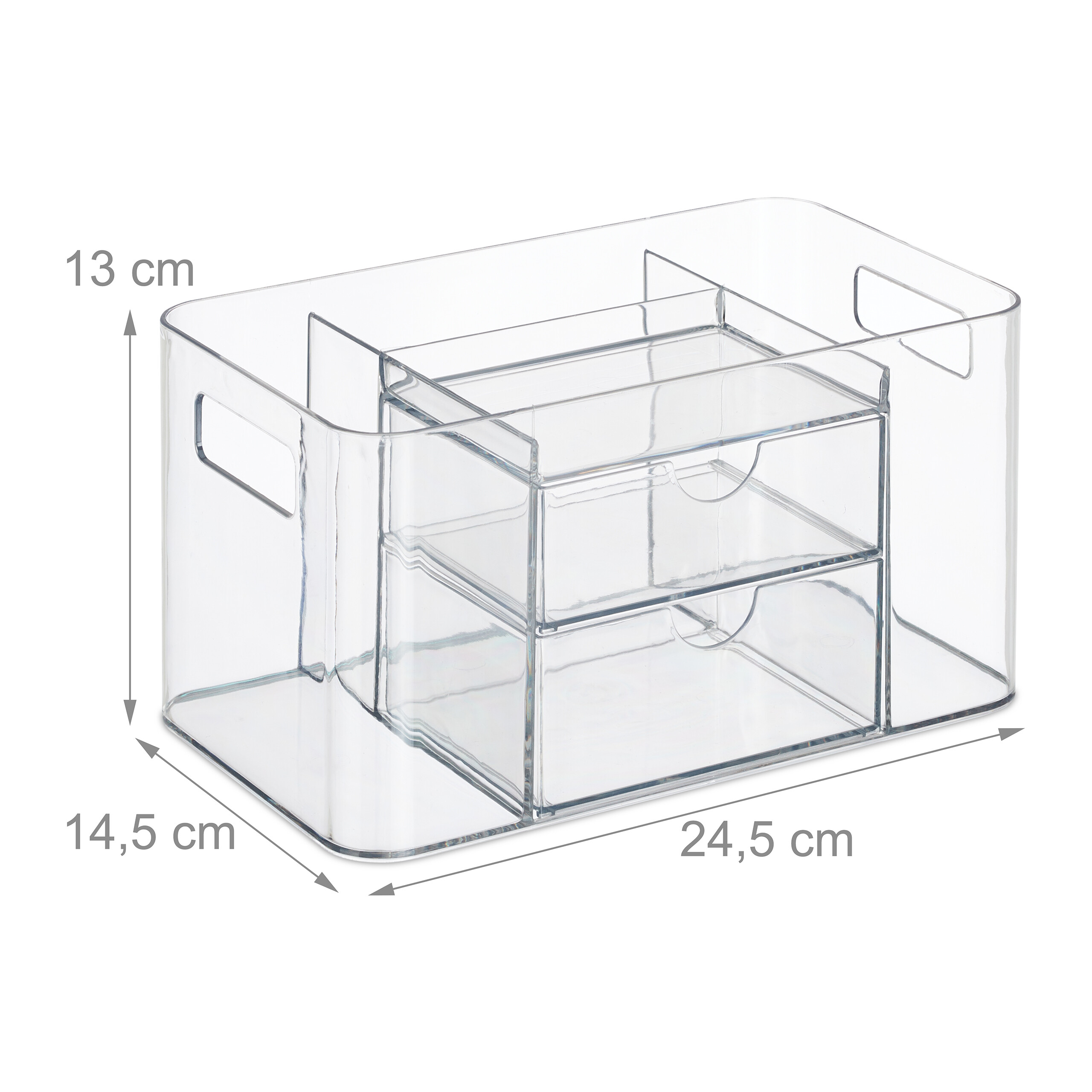 Skaidrus makiažo organizatorius su stalčiais 13x24,5x14,5cm.