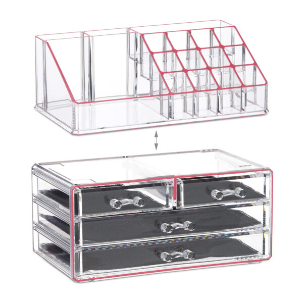 Ar pavargote raustis po kosmetikos krepšį, ieškodami mėgstamiausių grožio priemonių? Mūsų skaidrus makiažo organizatorius yra idealus sprendimas, suteikiantis tvarką ir estetiką jūsų kosmetikos kolekcijai. Šis elegantiškas ir funkcionalus organizatorius padės jums lengvai rasti viską, ko reikia, ir tuo pačiu papuoš jūsų vonios ar miegamojo interjerą.