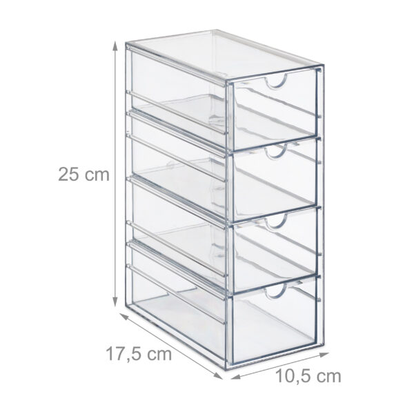 - Skaidrus dizainas: Dėl skaidraus plastiko visada gerai matysite stalčių turinį, todėl lengvai rasite reikiamus daiktus.