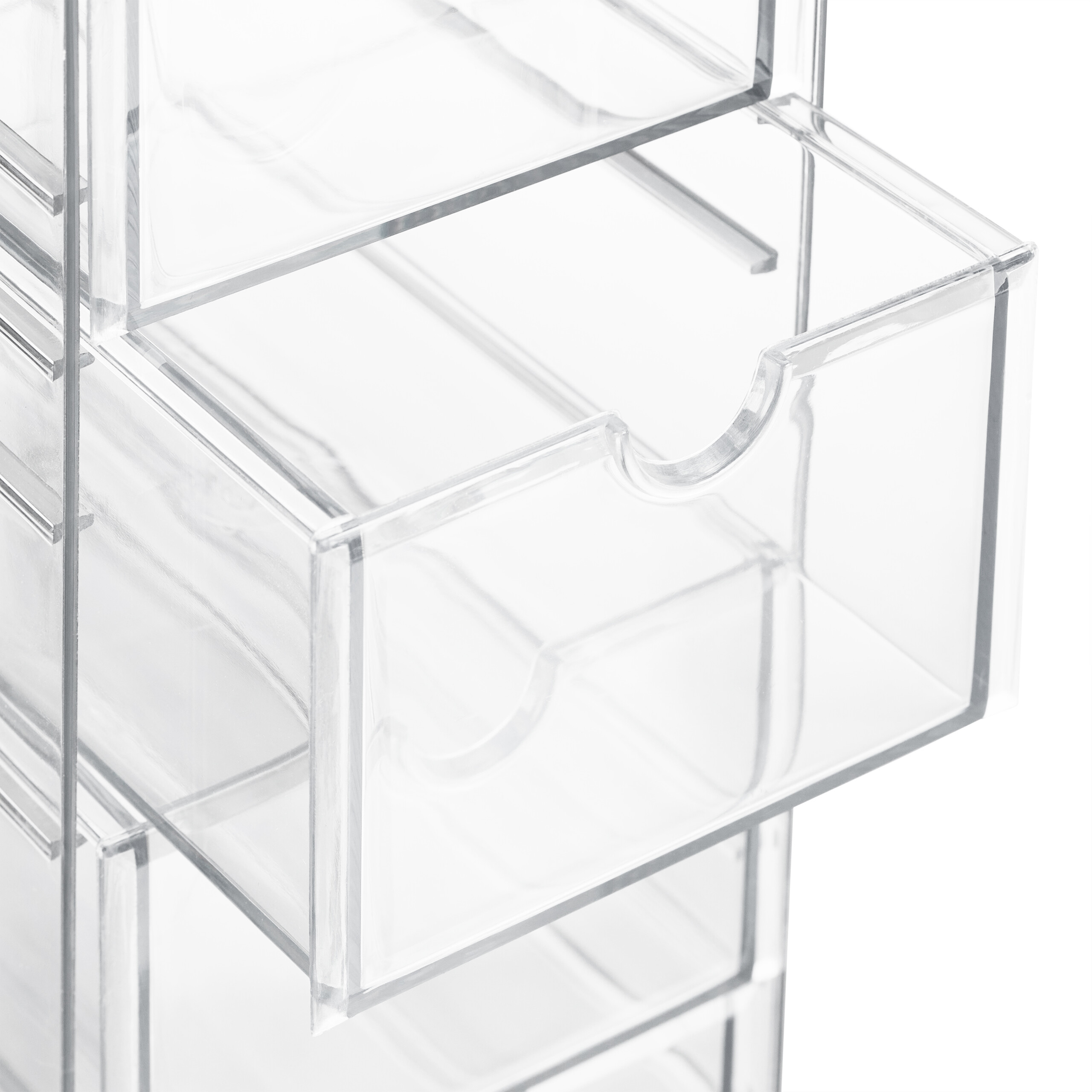 Įneškite tvarką ir eleganciją į savo kasdienybę su šiuo skaidriu makiažo organizatoriumi. Puikiai tinka ne tik kosmetikai, bet ir biuro reikmenims ar amatų reikmenims laikyti. Šis organizatorius padės jums išlaikyti tvarką ir lengvai rasti reikiamus daiktus.
