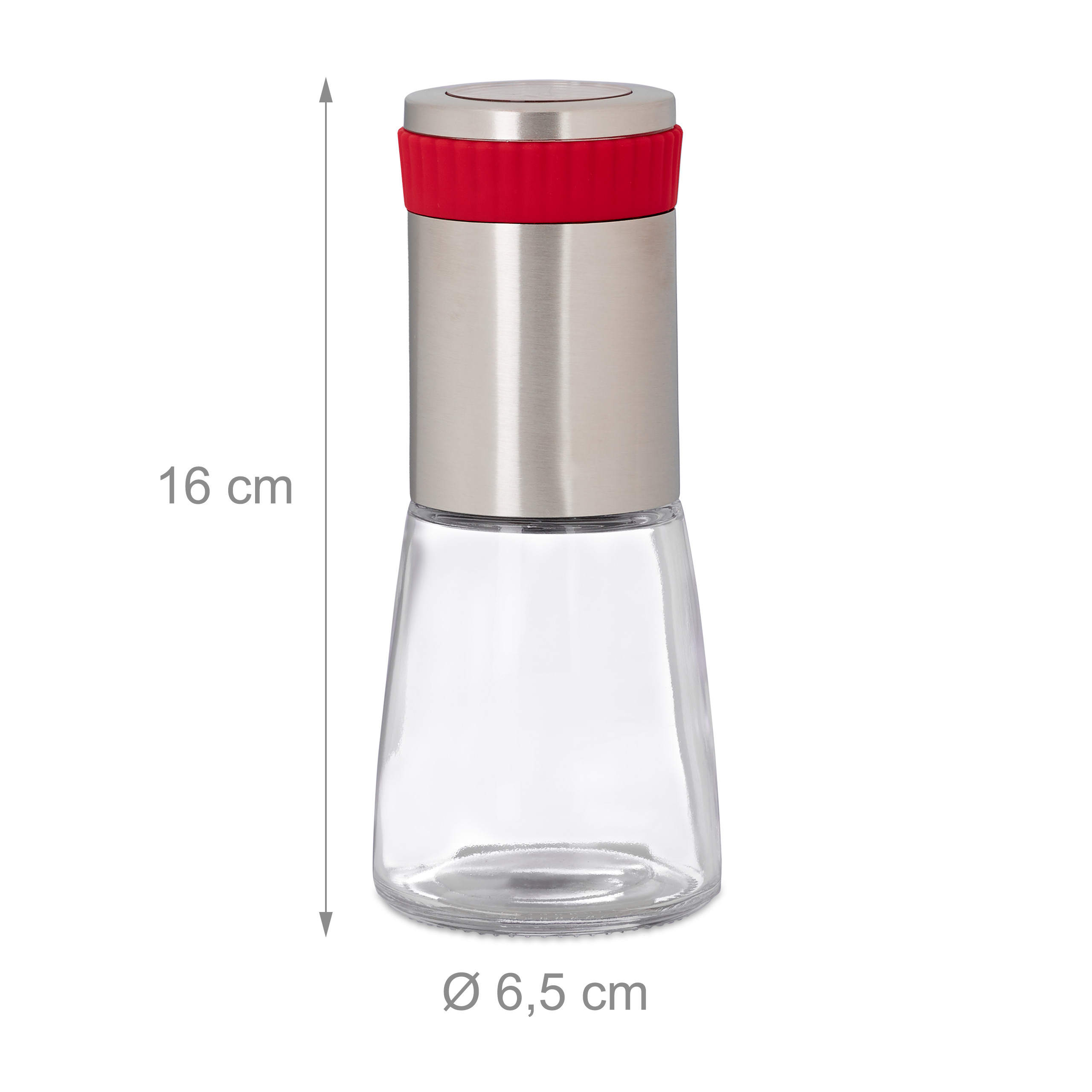 Skaidrus Prieskonių Malūnėlis 16×6,5cm – Sidabrinės/Raudonos Spalvos