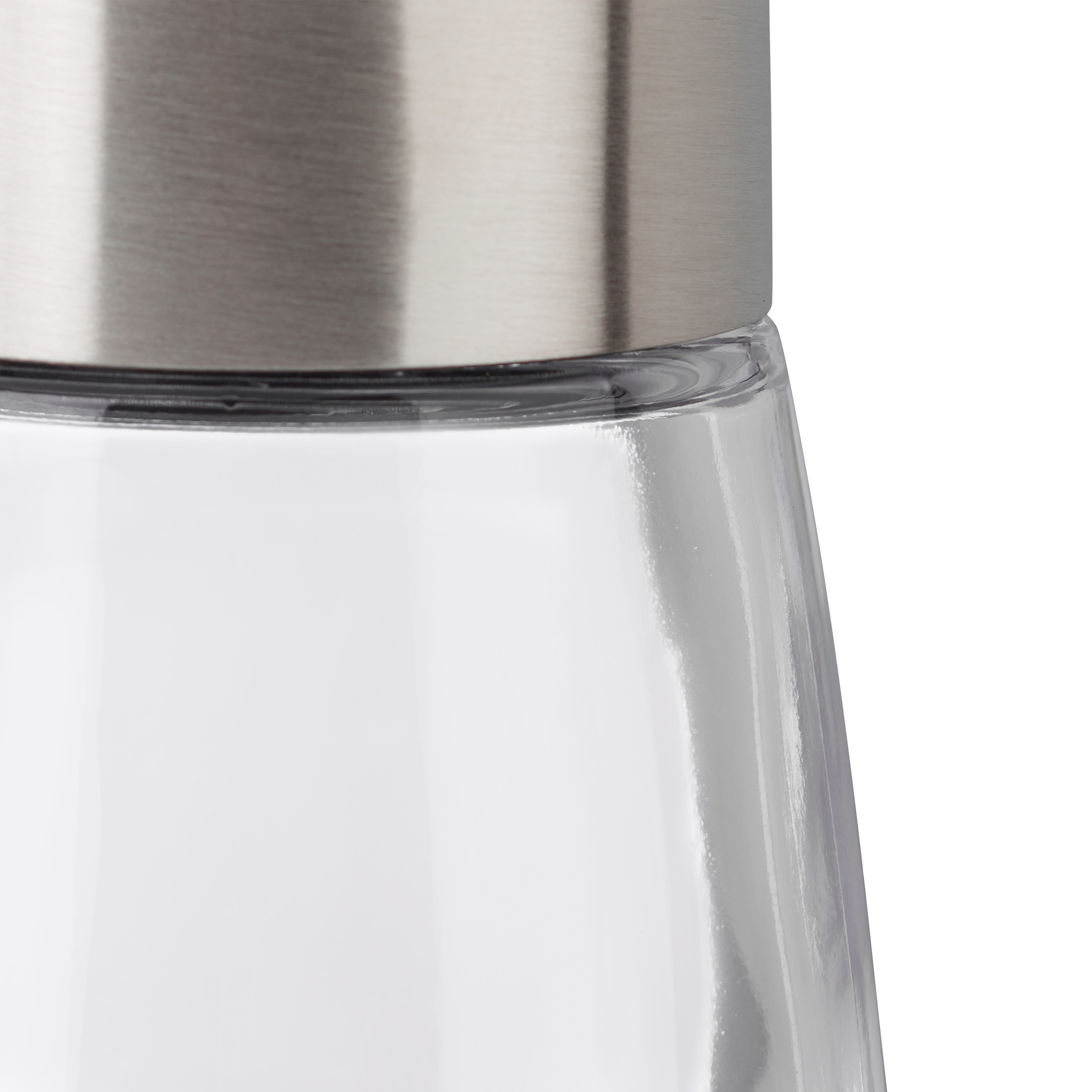 Įneškite elegancijos ir funkcionalumo į savo virtuvę su šiuo prašmatniu skaidriu prieskonių malūnėliu. Pagamintas iš aukštos kokybės nerūdijančio plieno ir stiklo, šis malūnėlis ne tik puikiai atrodo, bet ir užtikrina nepriekaištingą prieskonių malimą.