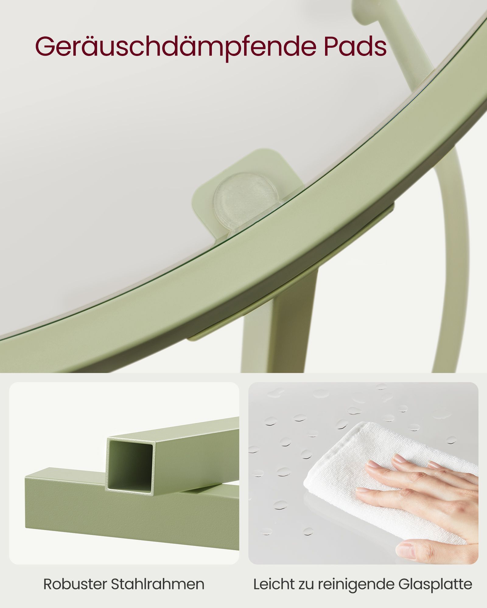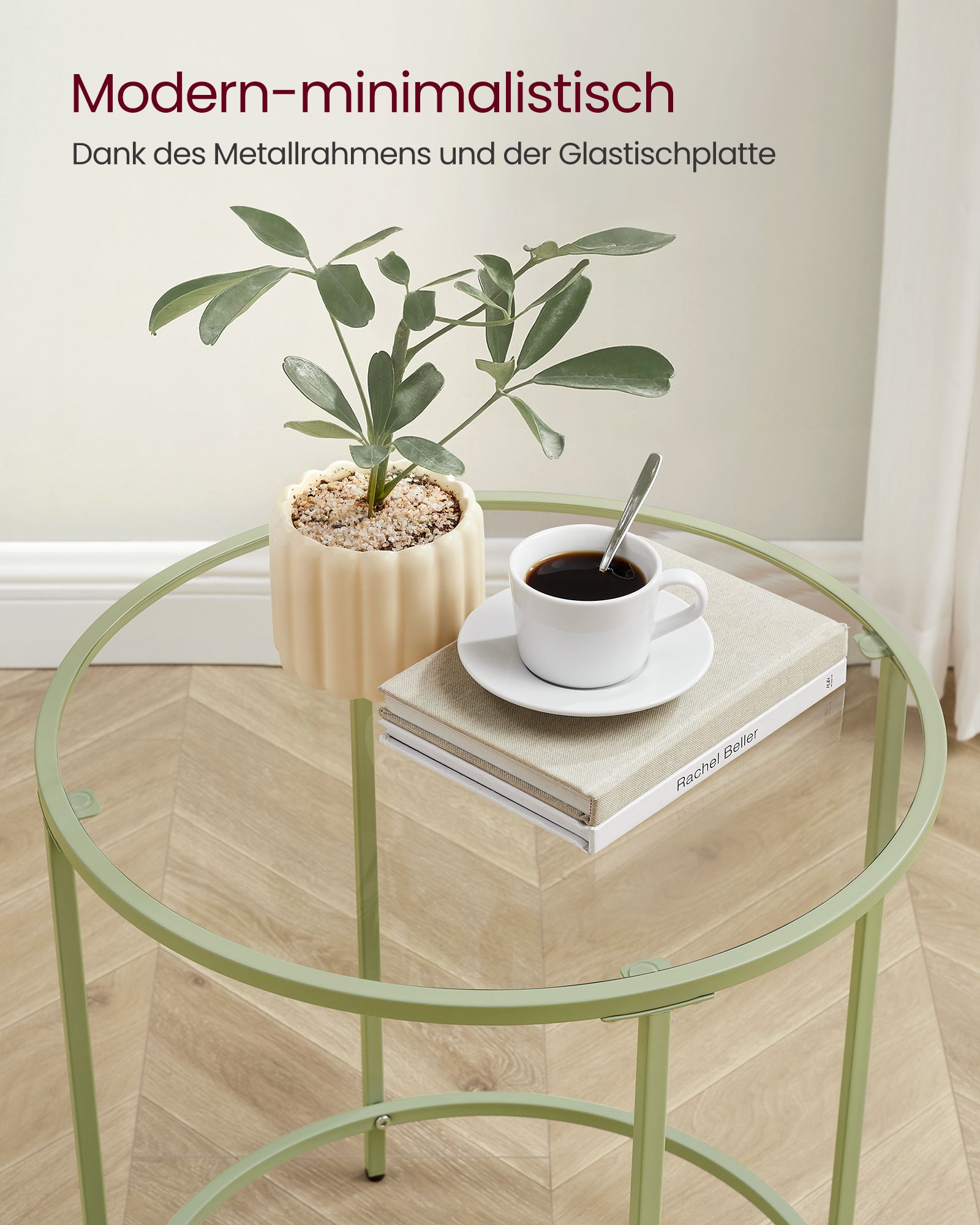 Šis staliukas pagamintas iš aukštos kokybės plieno ir grūdinto stiklo, užtikrinančio ilgaamžiškumą ir patikimumą. Jo lauro žalia-skaidri spalva suteikia subtilų ir šiuolaikišką įspūdį, kuris puikiai papildys jūsų namų ar biuro erdvę. Naudokite jį kaip kavos staliuką, dekoratyvinį akcentą ar funkcionalų paviršių jūsų kasdieniams daiktams laikyti.