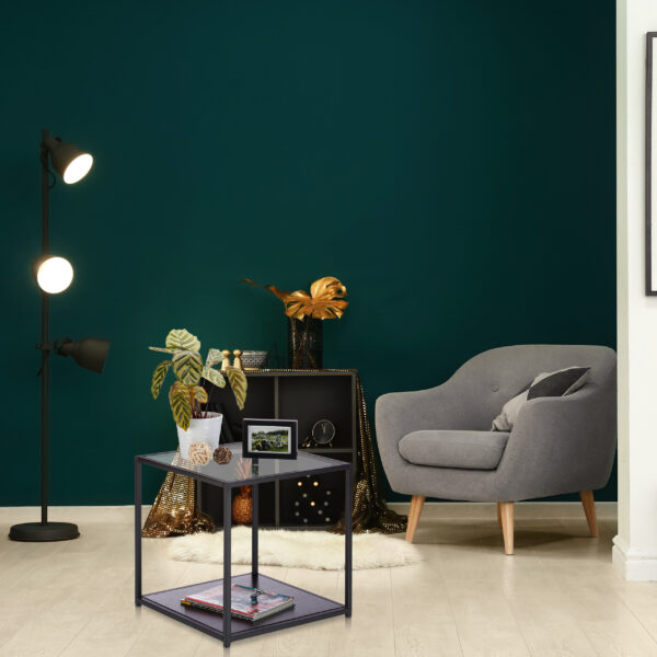 Skaidrus šoninis staliukas su lentyna 50x50x50cm, juodos spalvos