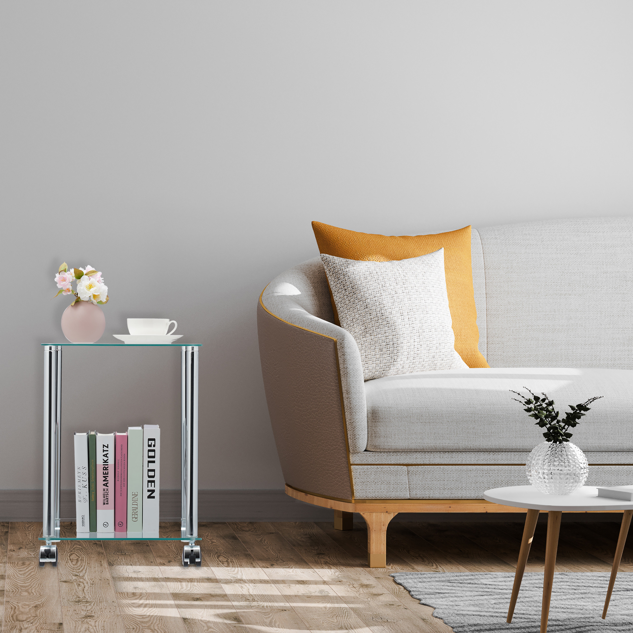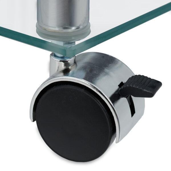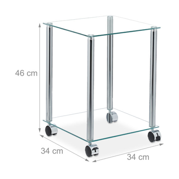 Skaidrus šoninis staliukas su ratukais – Elegancija ir Funkcionalumas Jūsų Namams
