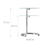 Skaidrus šoninis staliukas su reguliuojamu aukščiu 45x46cm, sidabrinės spalvos
