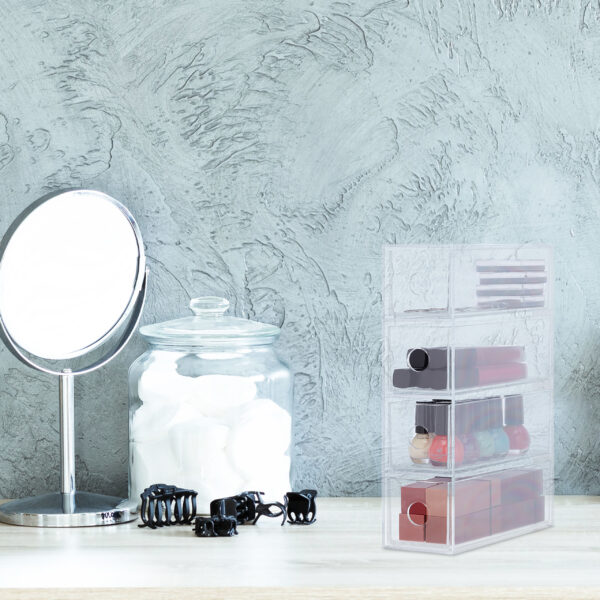 Tvarkos ir organizuotumo siekiantiems žmonėms pristatome skaidrų stalo organizatorių su 4 skyriais. Šis elegantiškas ir funkcionalus sprendimas padės jums išlaikyti tvarką ir lengvai rasti reikiamus daiktus bet kurioje erdvėje.