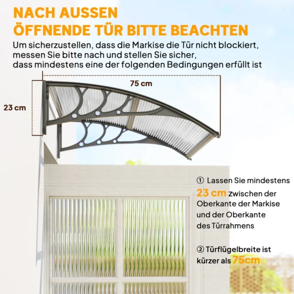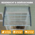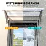 Mėgaukitės šiuo permatomu dvigubu lauko stogeliu. Lenkta konstrukcija užtikrina optimalią apsaugą nuo akinimo nuo saulės, UV spindulių, lengvo sniego ir lietaus. Baldakimą pritvirtinti prie sienos paprasta ir jis tinka daugeliui durų ir langų. Universalus elementas, kuris gali rasti savo vietą bet kur lauke. Mėgaukitės grynu oru be rūpesčių ištisus metus.