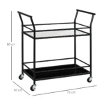 Virtuvės komodos pasirinkimas taip pat gali atspindėti estetinį žmogaus skonį. Grūdinto stiklo ir juodo metalo rėmo derinys suteikia HOMCOM virtuvės vežimėliui elegantiško žavesio. Dviejų pakopų lentynoje yra daug vietos buteliams, tualeto reikmenims ir kitiems kasdieniams daiktams. Serviravimo vežimėlį galite naudoti įvairiai, pvz. B. kaip serviravimo vežimėlis valgomajame arba kaip praktiška lentyna skalbykloje.