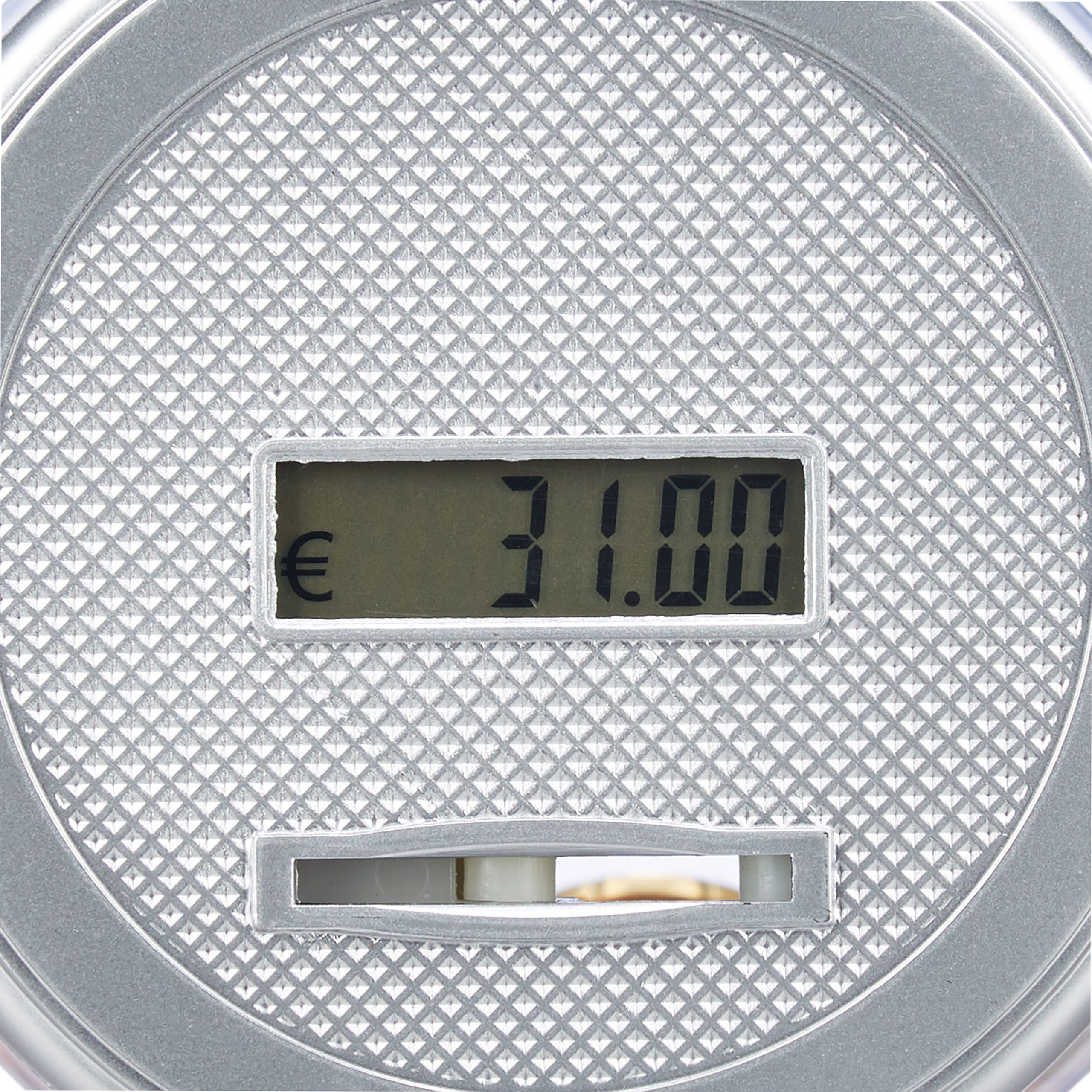 - Elektroninis skaitiklis: Lengvai suskaičiuokite savo monetas nuo 1 cento iki 2 eurų. Tiesiog įmeskite monetas per specialų lizdą ir stebėkite, kaip didėja suma ekrane.