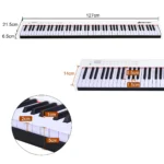 Skaitmeninis pianinas 127×21,5×6,5 cm baltos ir juodos spalvos yra universalus muzikos instrumentas, tinkantis tiek pradedantiesiems, tiek profesionaliems muzikantams. Šis 88 klavišų skaitmeninis pianinas pasižymi patvarumu ir įvairiomis funkcijomis, kurios padeda ugdyti muzikinius įgūdžius bei patogiai praktikuotis namuose ar keliaujant.