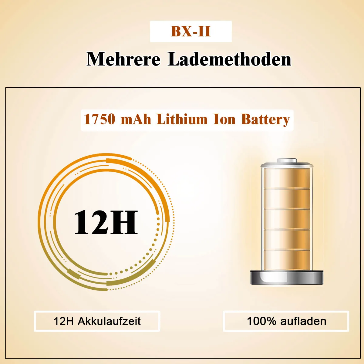 - Įmontuota ličio baterija leidžia groti iki 12 valandų po 5 valandų įkrovimo.