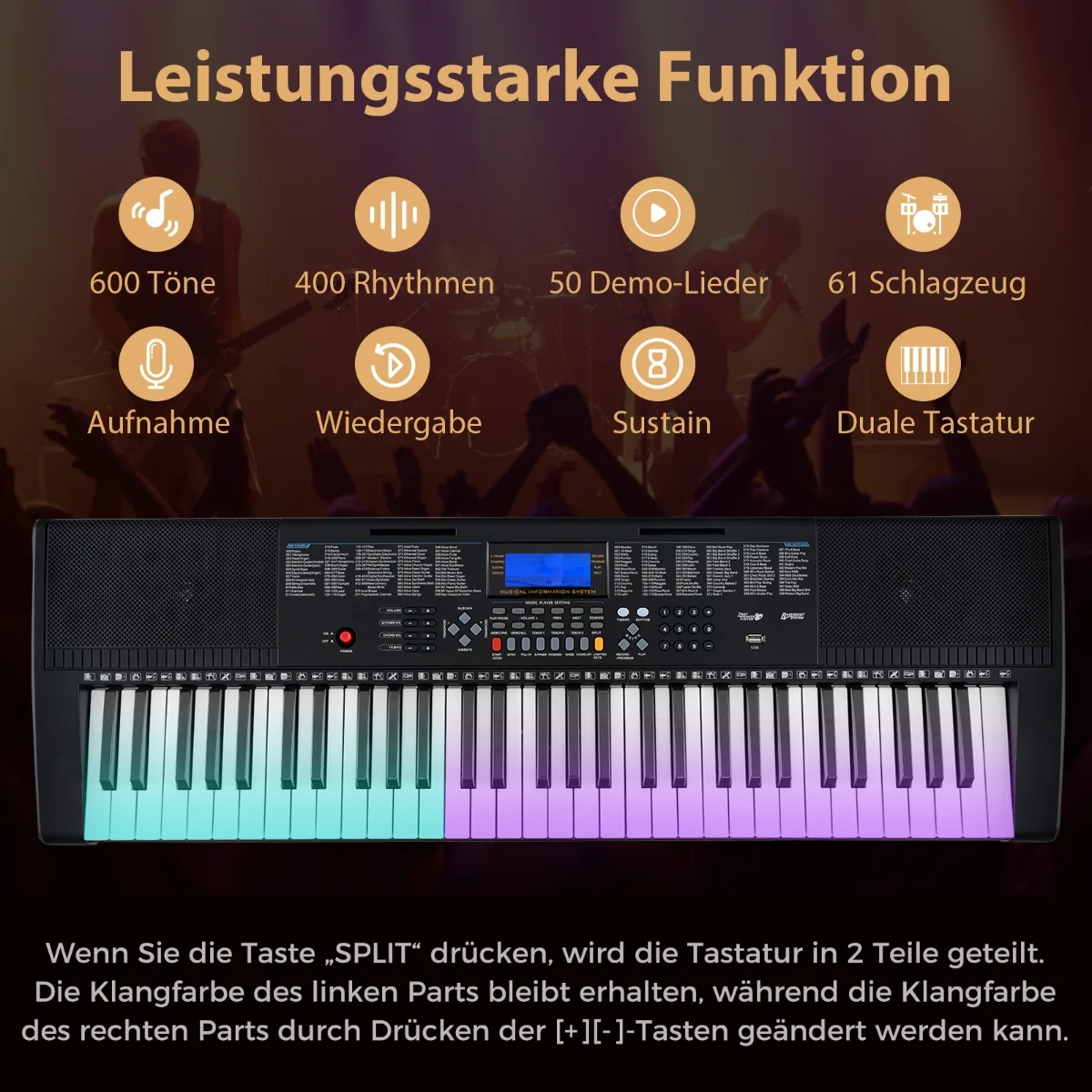 Skaitmeninis pianinas su taburetė juodos ir baltos spalvos yra puikus pasirinkimas tiek pradedantiesiems, tiek patyrusiems muzikantams. Šis elektroninis pianinas su 61 klavišu ir foniniu apšvietimu suteikia galimybę lavinti muzikinį kūrybingumą bei groti įvairiais garso efektais.