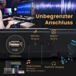 - USB prievadas ir garso įvestis integracijai su išoriniais įrenginiais.