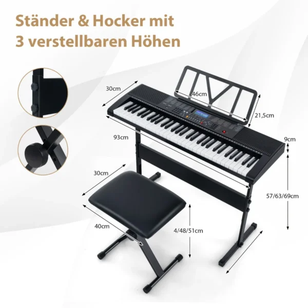 - Reguliuojami klaviatūros stovas ir taburetė su trimis aukščio lygiais optimaliam patogumui.