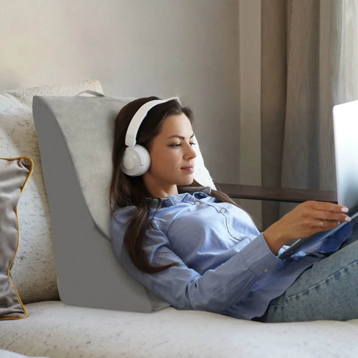 Skaitymo pagalvė 51x32x63 cm, pilkos spalvos, sukurta ergonomiško dizaino ir skirta suteikti komfortą ir atramą sėdint ar gulint lovoje. Ši ortopedinė pleištinė pagalvė padeda pagerinti laikyseną ir miego kokybę, mažina nugaros skausmus bei skatina kraujotaką.