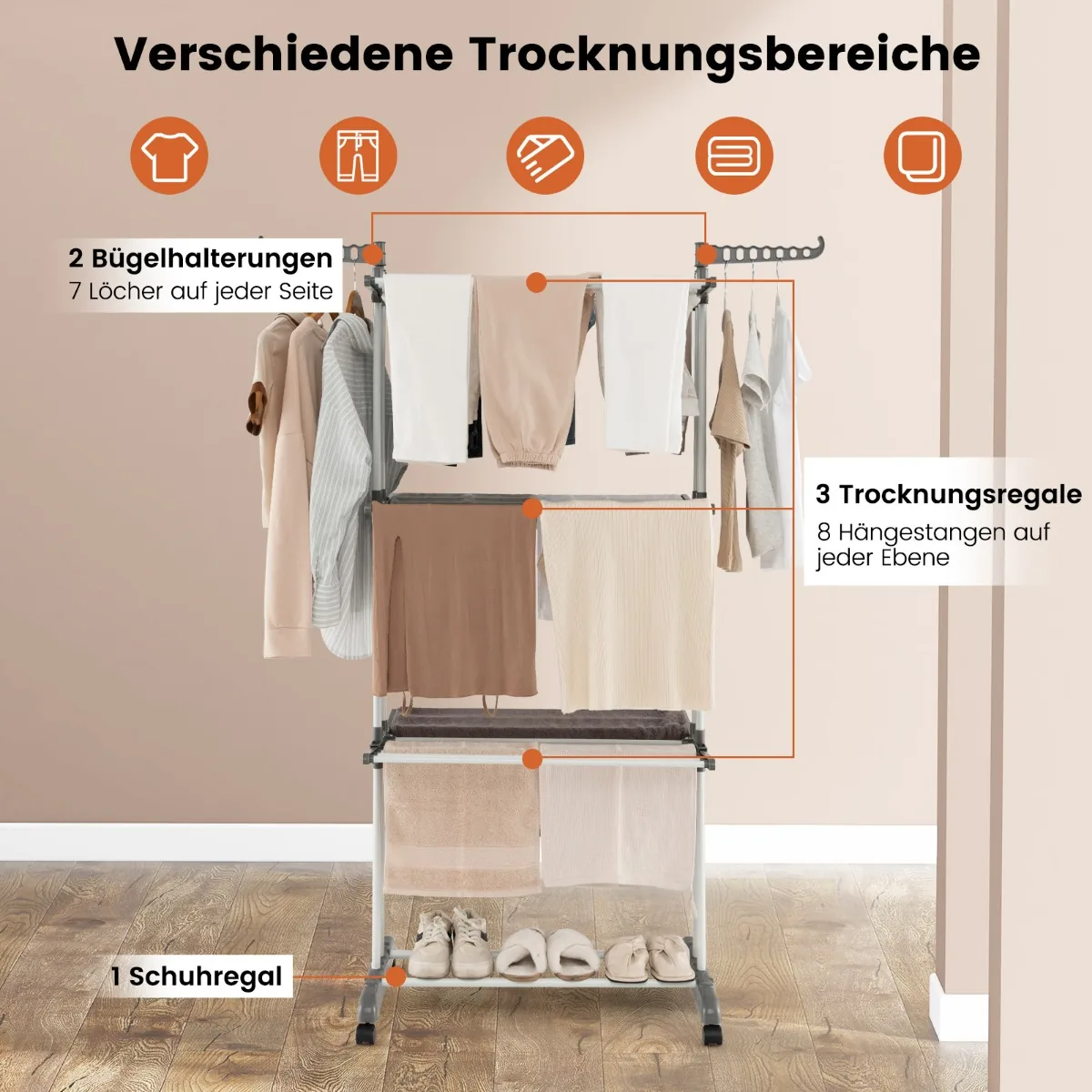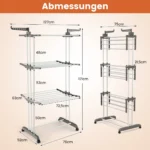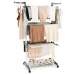 Skalbinių džiovyklė 127x63x171cm, baltos ir pilkos spalvų, puikiai tinka drabužių džiovinimui tiek namuose, tiek lauke. Sulankstomas dizainas ir mobilūs ratukai užtikrina patogų naudojimą bei vietos taupymą.