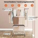 - Sklandžiai riedantys 360° pasukami ratukai, leidžiantys lengvai perkelti džiovyklę.