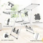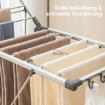 - Dvi džiovinimo pakopos su 21 džiovinimo strypu, skirtu įvairių rūbų, rankšluosčių ar šlepečių džiovinimui