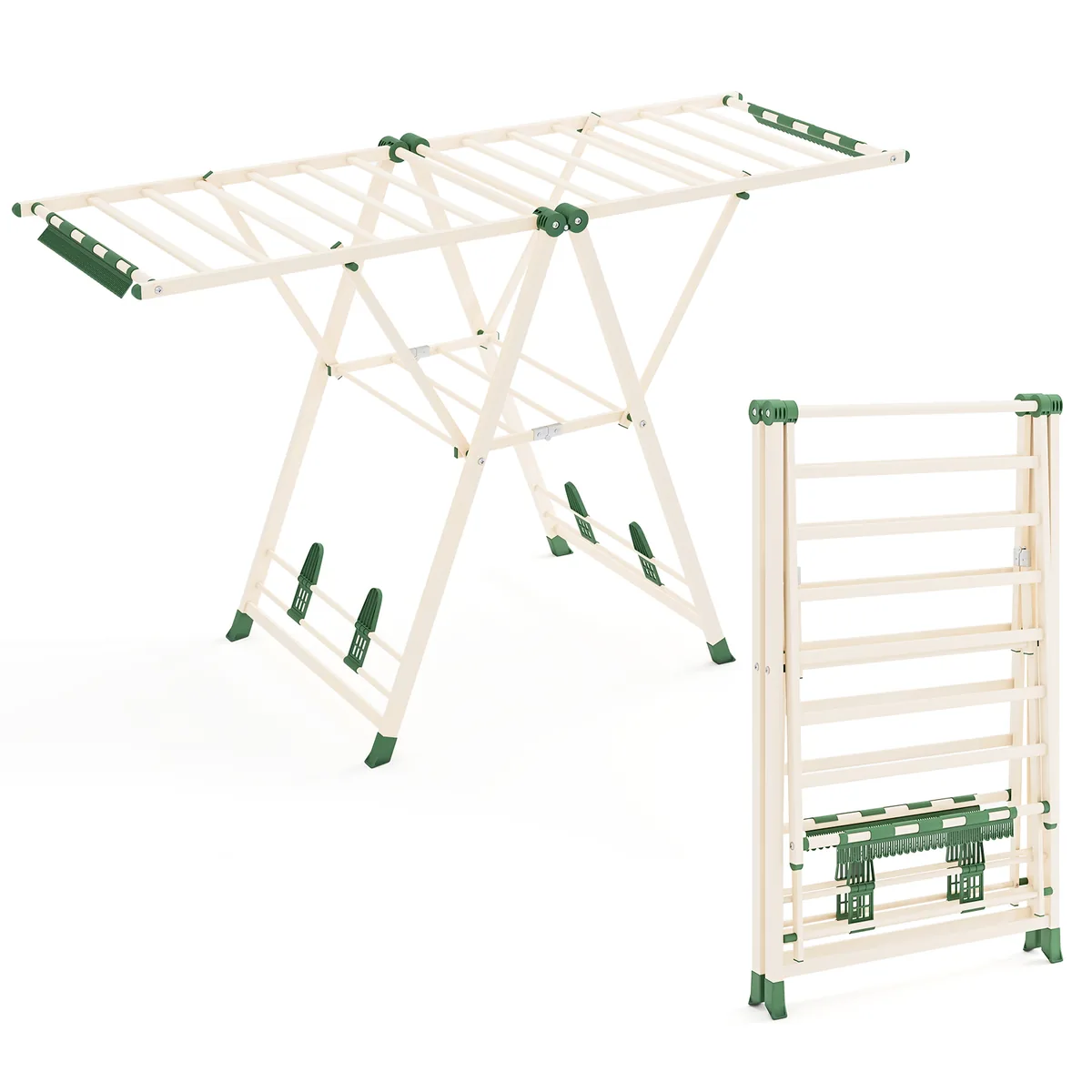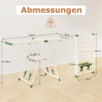 Skalbinių džiovyklė 163x56x158 cm, smėlio/žalios spalvos, yra praktiškas sprendimas skalbinių džiovinimui tiek namuose, tiek lauke. Didelė džiovinimo erdvė ir reguliuojami sparnai leidžia patogiai išdžiovinti įvairaus ilgio drabužius.