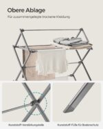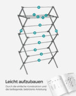 Ši džiovyklė yra pagaminta iš aukštos kokybės plieno ir polipropileno, užtikrinančių ilgaamžiškumą ir stabilumą. Jos kompaktiškas dizainas leidžia lengvai sulankstyti ir laikyti, kai ji nenaudojama, todėl puikiai tinka mažesnėms erdvėms. Su maksimaliu 7 kg apkrovos pajėgumu, ši džiovyklė yra pakankamai tvirta, kad atlaikytų jūsų kasdienius skalbinius.
