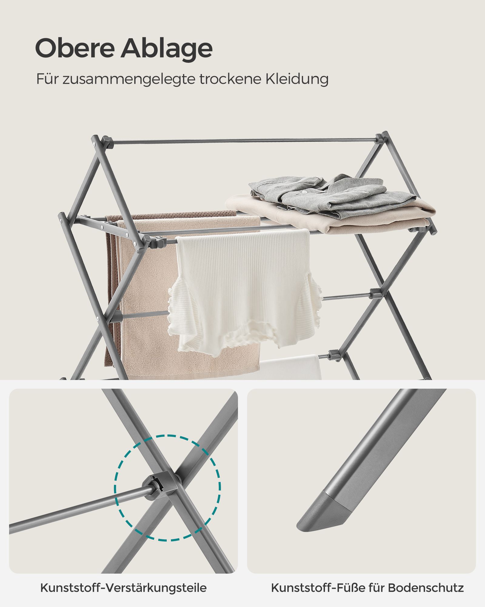 Skalbinių džiovyklė 37x75x135,1 cm – Pilkos spalvos