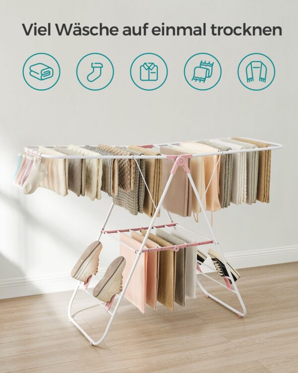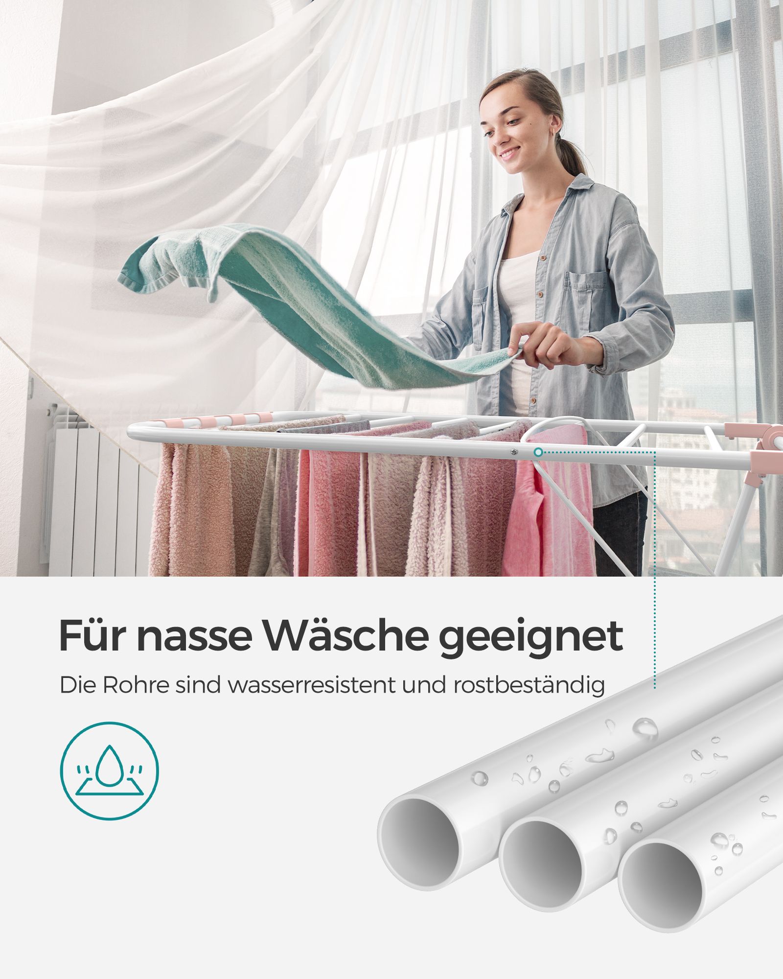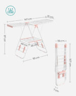 Skalbinių džiovyklė 51x147x97 cm – Debesų Balta ir Pastelinė Rožinė