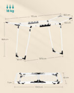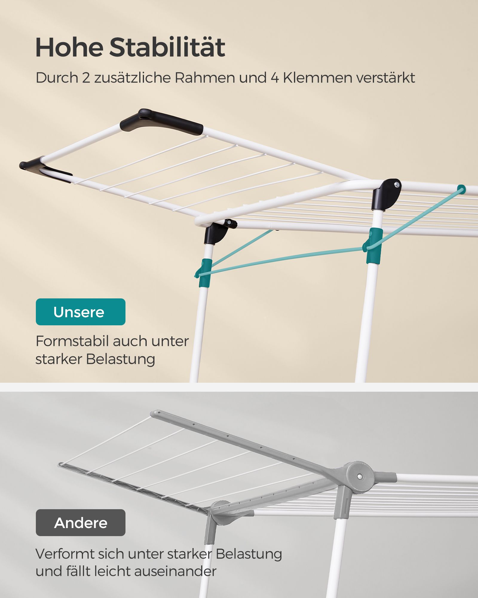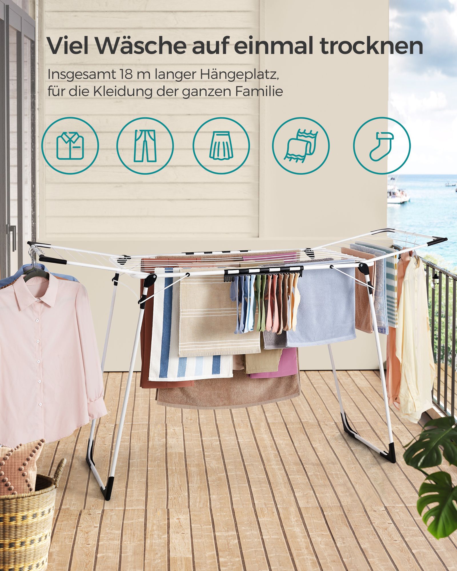 Ši džiovyklė yra pagaminta iš aukštos kokybės plieno ir PP plastiko, užtikrinančių ilgaamžiškumą ir stabilumą. Jos kompaktiškas dizainas leidžia lengvai sulankstyti ir laikyti, kai ji nenaudojama, todėl puikiai tinka tiek mažoms, tiek didelėms erdvėms.