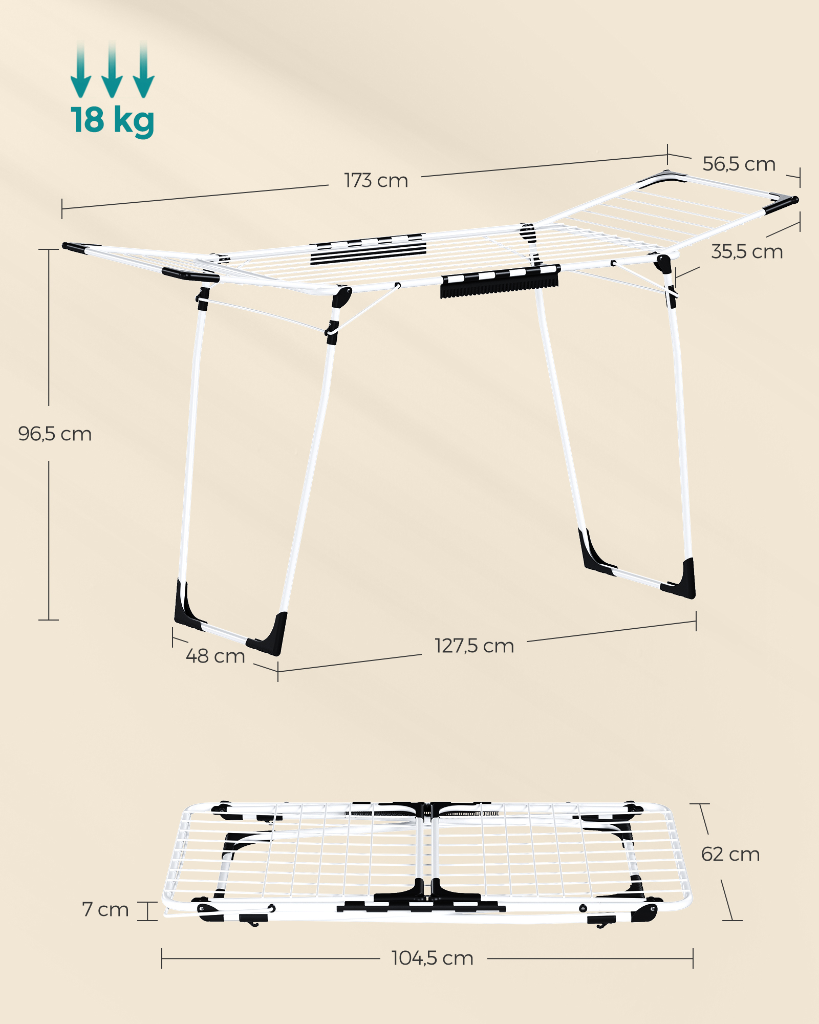 Skalbinių džiovyklė 56,5x173x96,5cm., baltos/juodos spalvos
