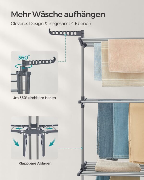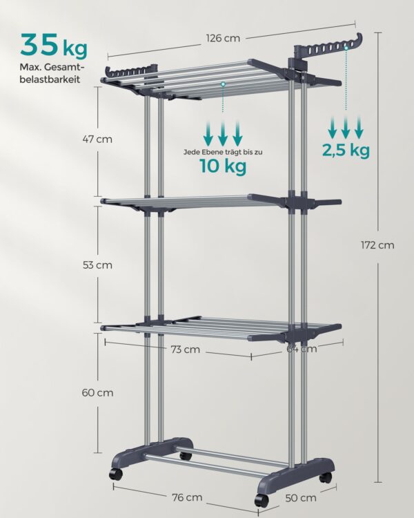 Skalbinių džiovyklė 64x126x172cm – Sidabrinės/Tamsiai Pilkos Spalvos