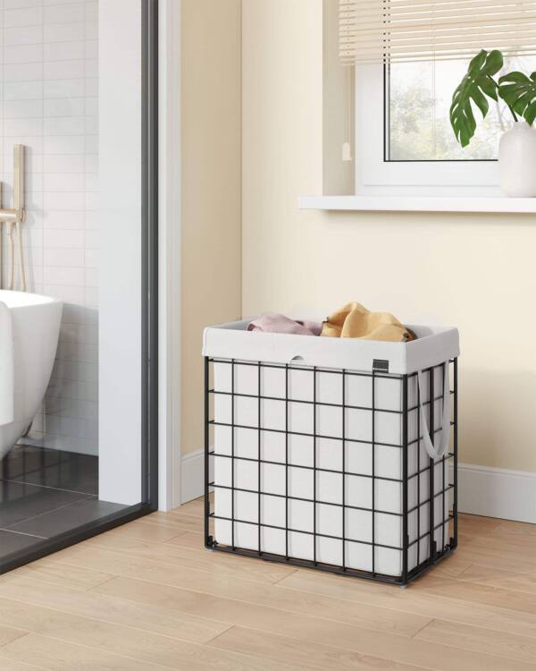 Šis skalbinių krepšelis yra puikus pasirinkimas jūsų namams, suteikiantis tiek funkcionalumą, tiek estetiką. Jo juodai baltos spalvos dizainas puikiai dera prie įvairių interjerų, o tvirtos medžiagos užtikrina ilgaamžiškumą.